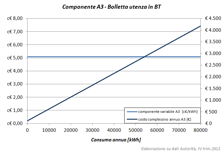 Queste le tabelle con i costi sulla bolletta (componente A3 che si paga per coprire il costo degli incentivi).