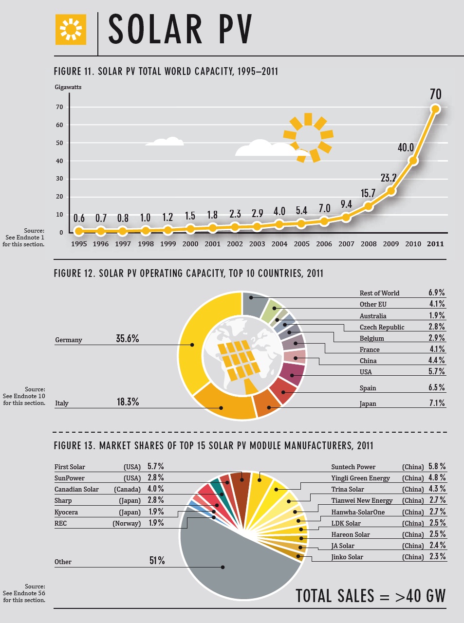 Dati alla mano vediamo che nel 2012 l’Italia é il PRIMO paese al mondo (al mondo) per incremento annuale del fotovoltaico istallato (qui trovate il report del REN21 il Renewable Energy Policy Network for the 21st century). Siamo primi dopo Germania, Cina e Stati Uniti. Siamo saliti al 5o posto nella classifica mondiale. Impressionante no?