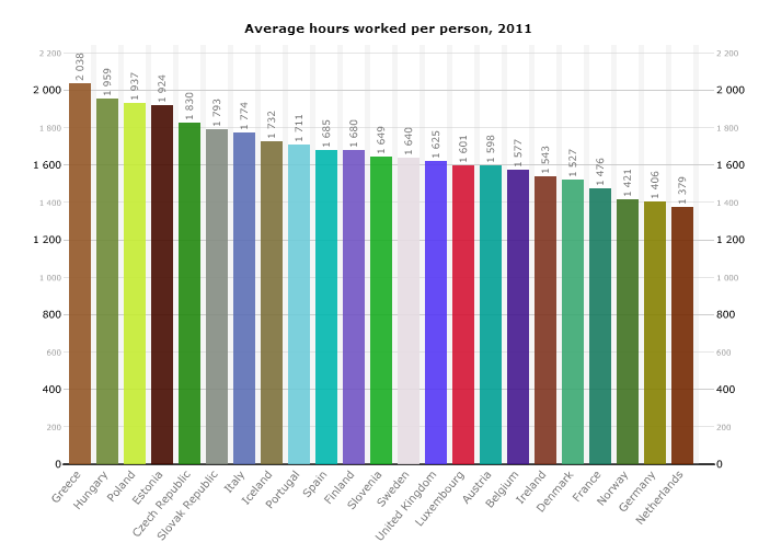 Il grafico che segue elenca le ore lavorate medie nei principali paesi Europei.